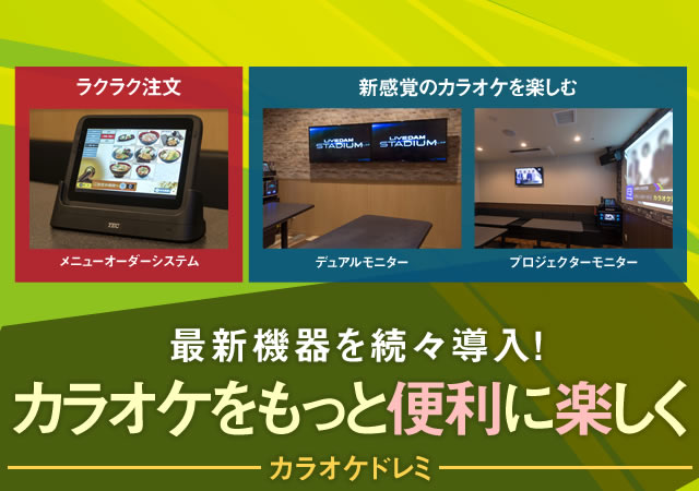DAM(ダム)、JOYSOUND(ジョイサウンド)の最新機材を完備。